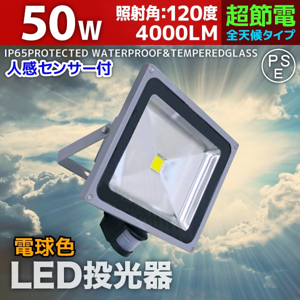 人感センサー LED投光器 ワークライト 50W 500W相当 防水 防雨 昼光色 電球色 3mコード付 防犯 作業灯 駐車場灯 屋内 屋外 照明 A42SDW