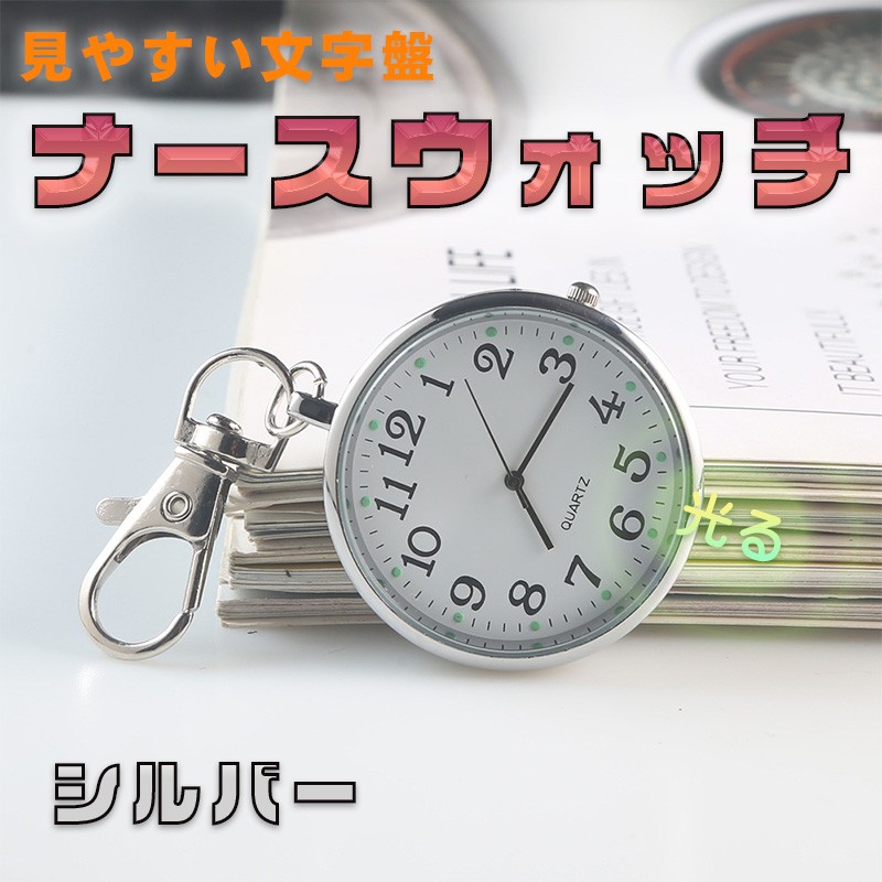 ナースウォッチ 懐中時計 時計 キーホルダー 防水 アナログ 蓄光 かわいい 看護師 おしゃれ ファッション 軽量 シルバー