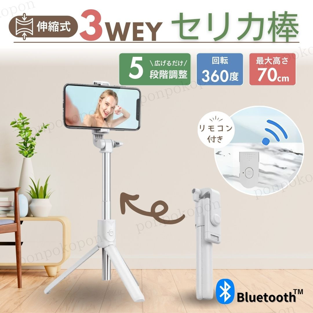 自撮り棒 セルカ棒 三脚 スタンド Bluetooth スマホ リモコン リモート 撮影 遠隔 コンパクト 兼用 持ち運び 携帯 軽量 ロング 観光 人気