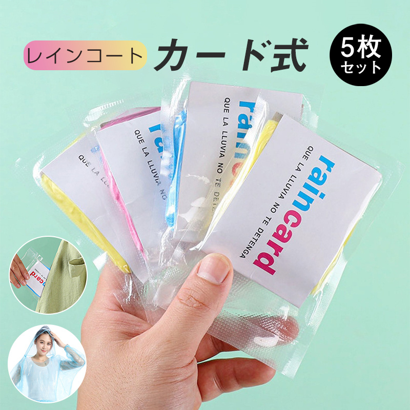 レインコート レインポンチョ 5枚セット カード式 カッパ 携帯便利 使い捨て 一部即納 大人 子供 ゲリラ豪雨 梅雨メンズ 雨具 台風 業務用 撥水加工 通勤