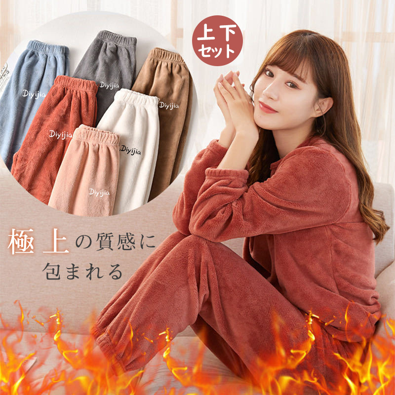 パジャマ ルームウェア レディース 秋冬 モコモコ 長袖 フランネル ルームウェア 暖かい 上下セット 寝巻き 部屋着 ゆったり ナイトウェア 室内着 爆買