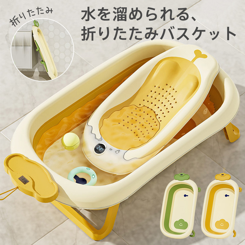 ベビーバス 折りたたみ式 洗い桶 畳める 温度計付き ワイドサイズ 水抜き穴付き 新生児 乳幼児 タライ お風呂 ペット たらい バスタブ 爆買