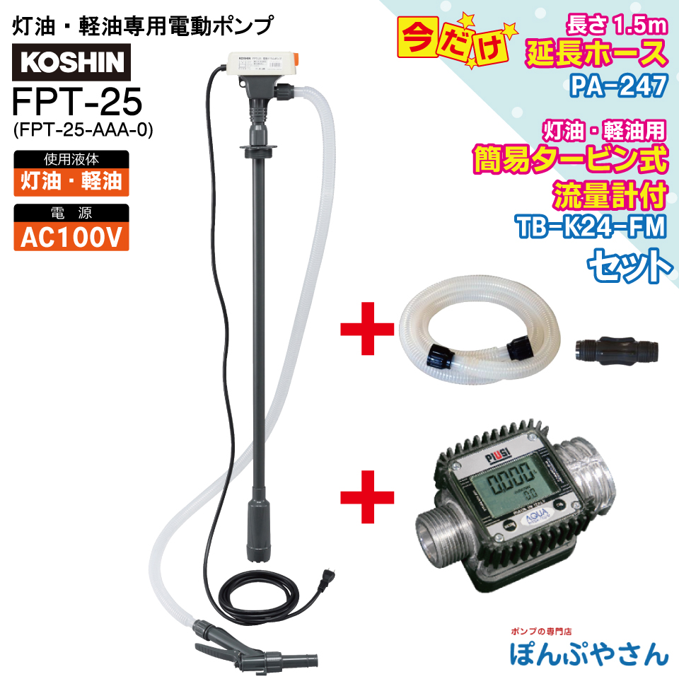 【工進 灯油・軽油用 電動ドラムポンプ FPT-25+延長ホース1.5m+流量計K24セット品】です