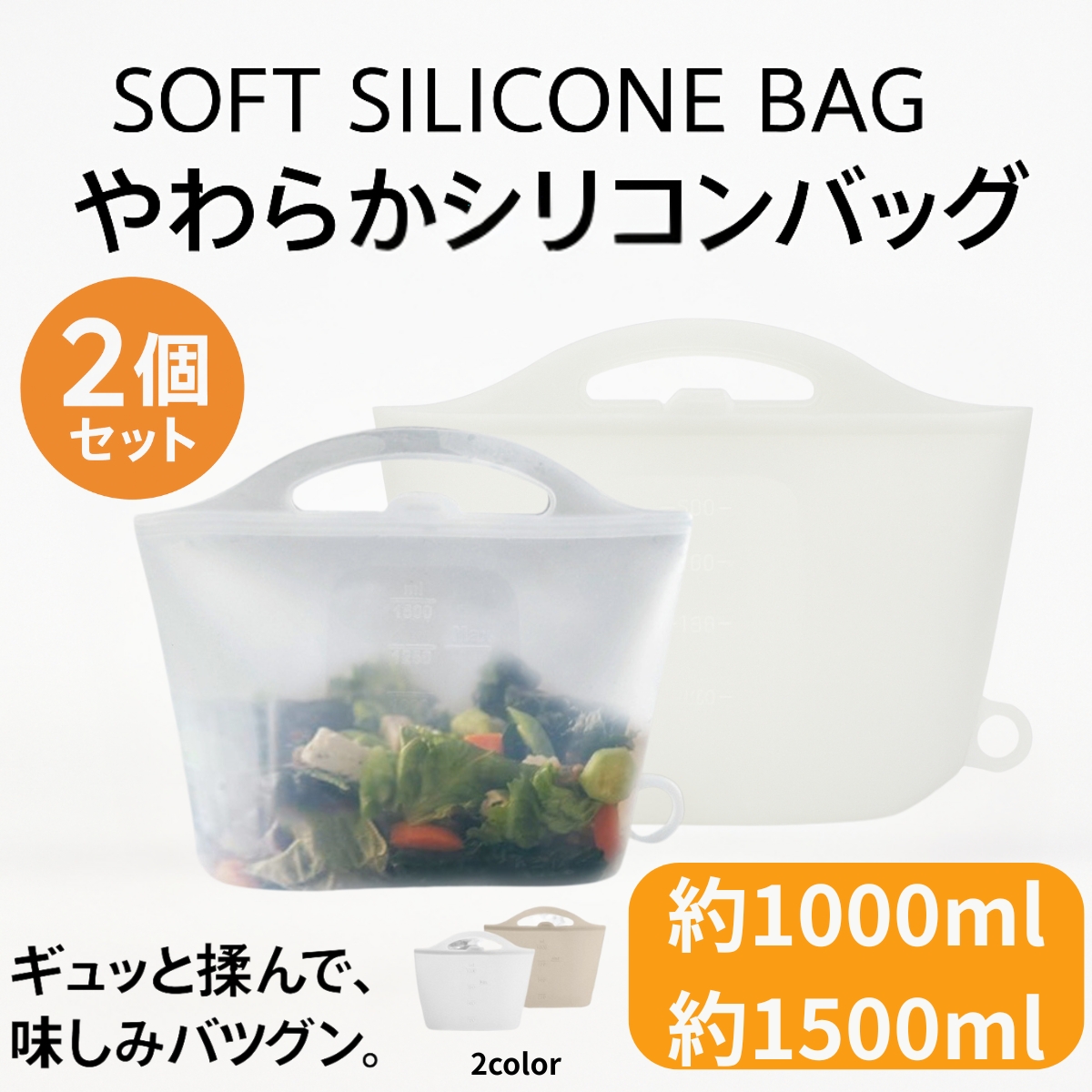 シリコンバッグ 離乳食 2個セット1500ml 1000ml 湯煎 電子 レンジ 食洗機 お弁当 食品 自立 ミニ 耐熱 2l 1l 爆買