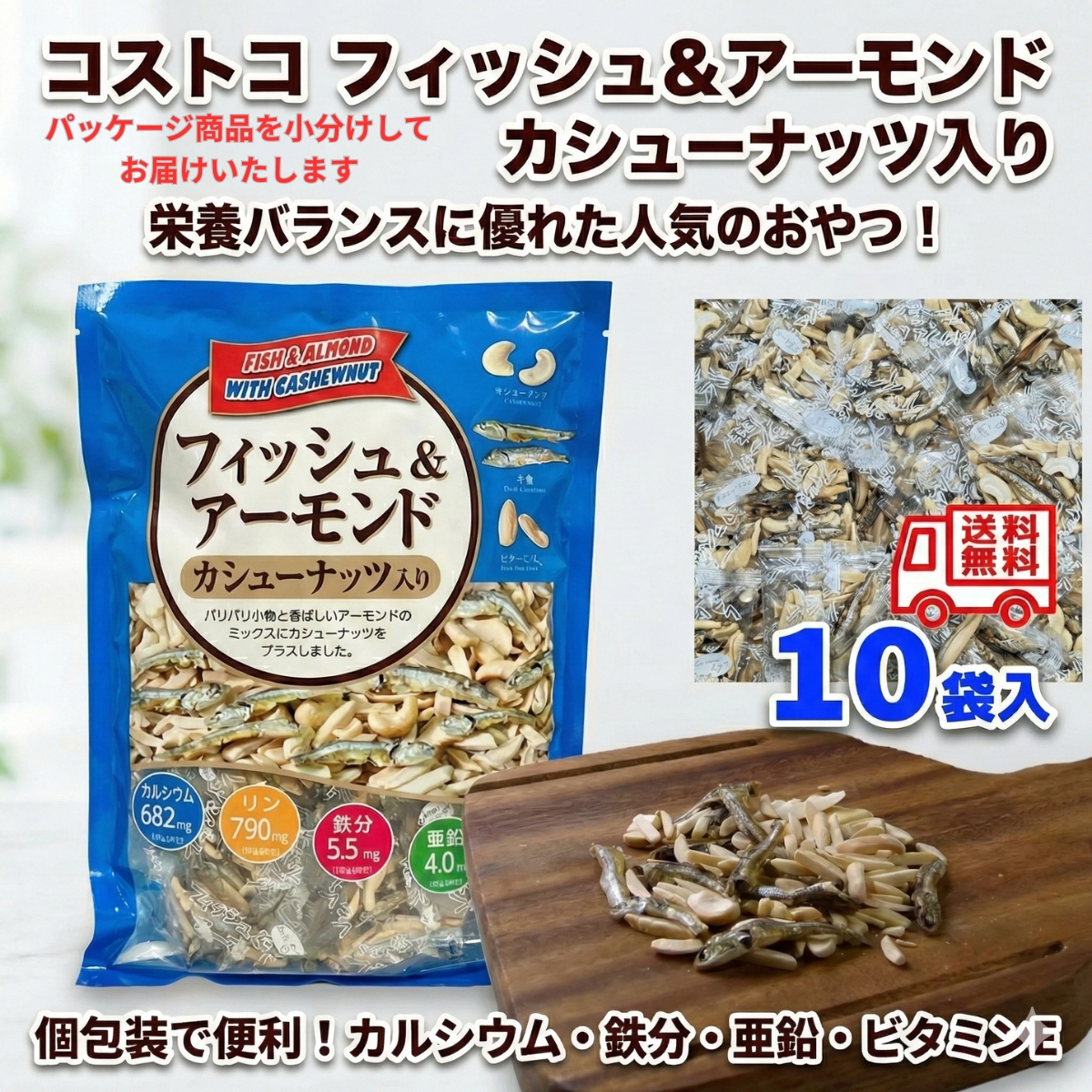 【コストコで大人気!美味しく食べて健康に。】 パリパリの小魚、香ばしいアーモンド、そして優しい甘さのカシューナッツ。 3つの素材が絶妙にミックスされた、栄養バランス満点の「フィッシュ&アーモンド カシューナッツ入り」です。