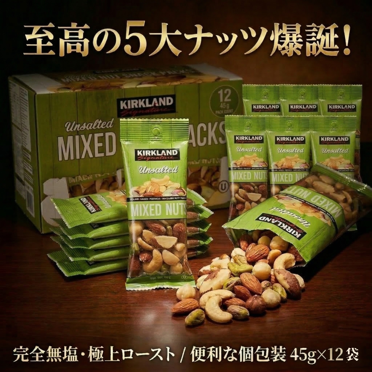 カークランド ミックスナッツ 12袋 45g×12 無塩ミックスナッツ コストコ 個包装 アーモンド ピスタチオ おやつ