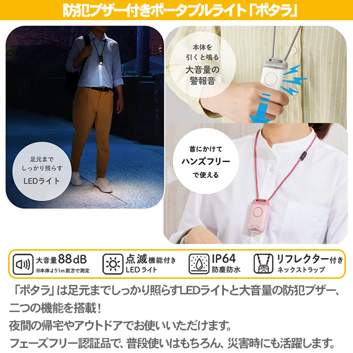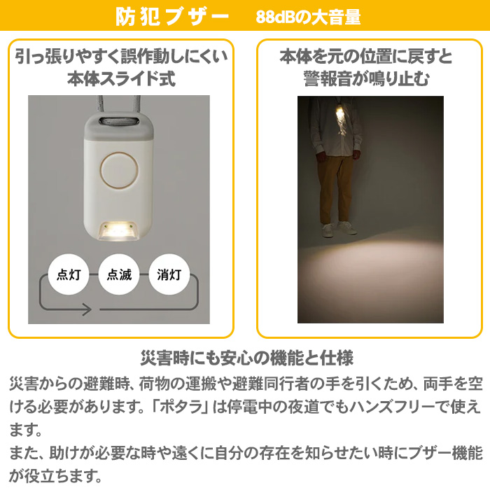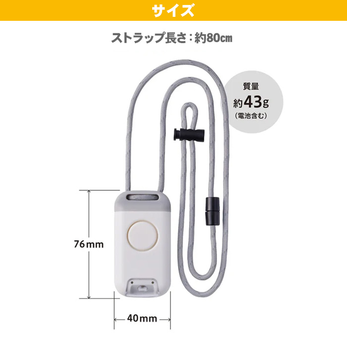 【防犯ブザー】連続吹鳴時間:37分以上(試験温度25±5°C)