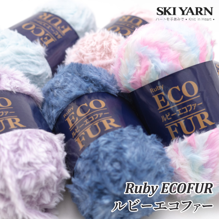 | スキー毛糸 ルビーエコファー 太番手のファーながら軽くて風合いもよく、フェイクファーとしての仕上がりもとても良い糸です。 色は根元のカラーと毛先の白地がよりファーらしさを醸し出しており、1玉で襟元小物ができるコンセプトヤーンです。 |