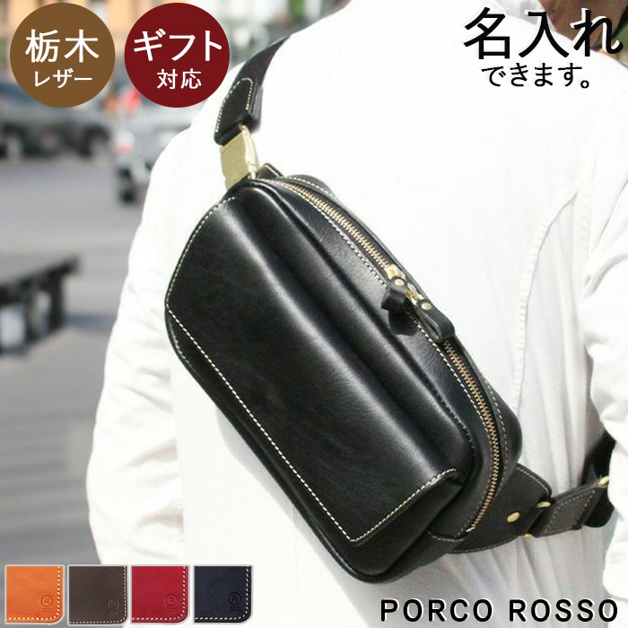 ボディバッグ メンズ レディース 本革 栃木レザー 斜めがけ ブランド ポルコロッソ ショルダーバッグ 名入れ 革 レザー 日本製 バッグ [nouki3]