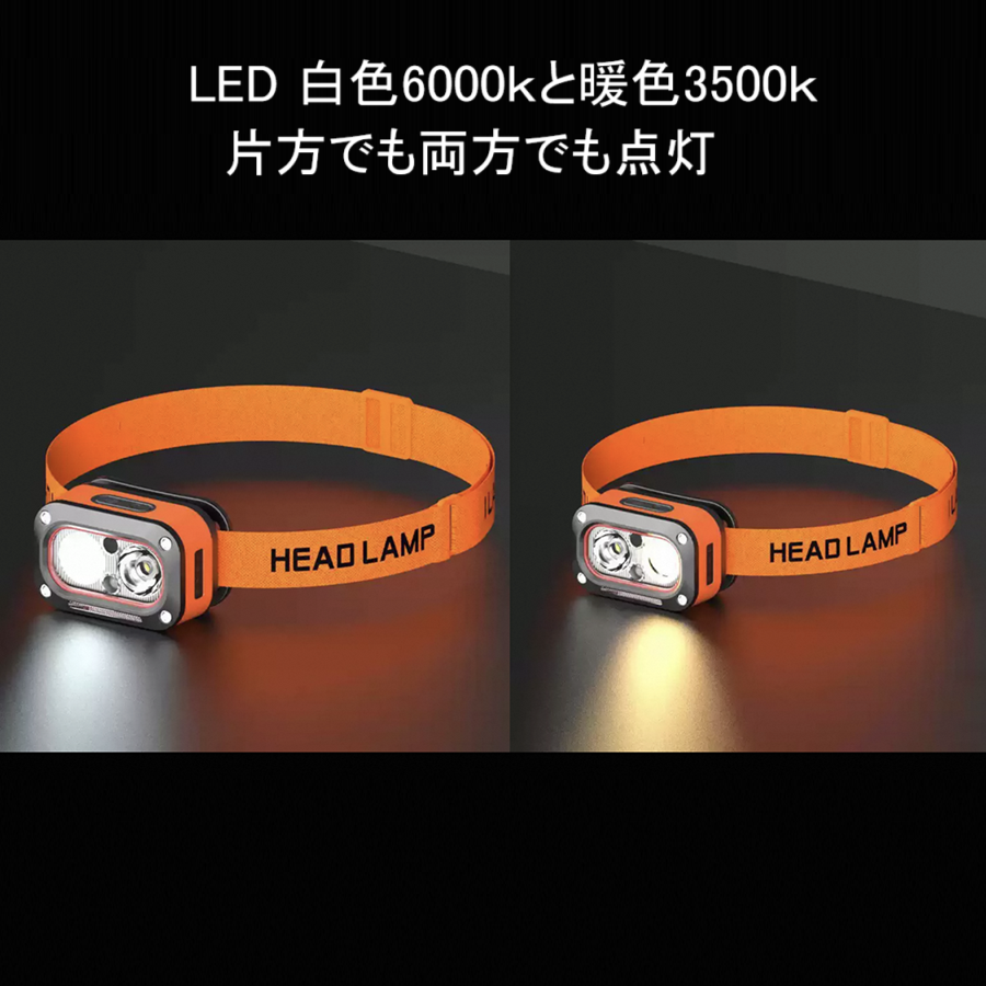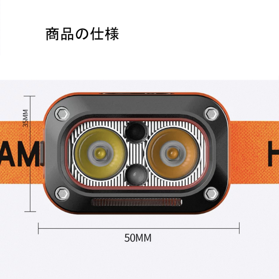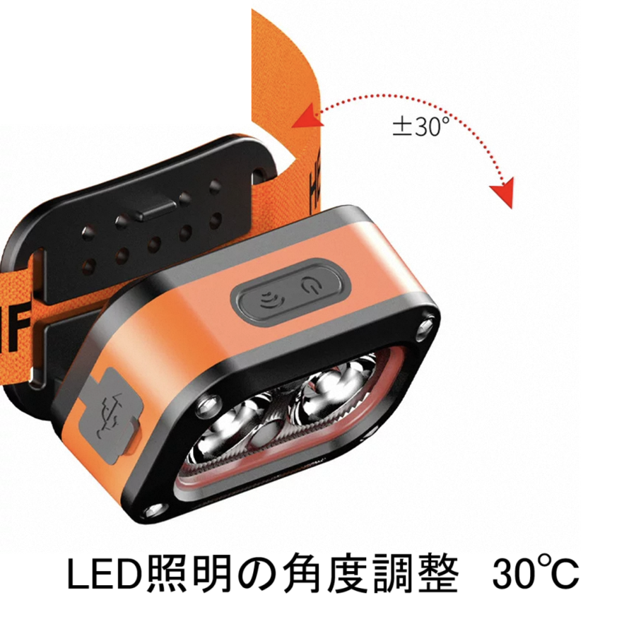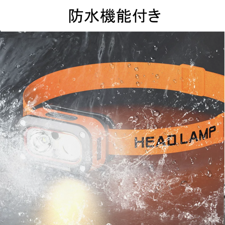 ヘッドライト 充電式 LED 人感式 防水 登山 釣り キャンプ 登山用 アウトドア用 防災 災害対策 LED コンパクト LEDミニライト 充電LEDヘッドライト T008 橙