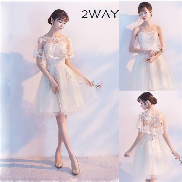 2WAY パーティードレス 大きいサイズ ドレス 20代 30代 膝丈ドレス XS~3XL ブライドメイド 結婚式 成人式 花嫁ドレス 二次会 演奏会 披露宴ドレス 発表会 ワンピース レディース お呼ばれ 小さいサイズ アイボリーda313d3d3d4