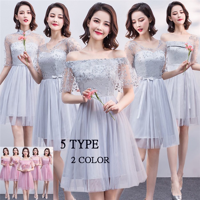 5Type ブライズメイド ドレス ショート丈 大きいサイズ 二次会 ロング丈 パーティー 結婚式 体型カバー Aラインドレス フォーマル 謝恩会 二次会 卒業式 発表会 演奏会 20代 30代 40代 da676c0c0zb