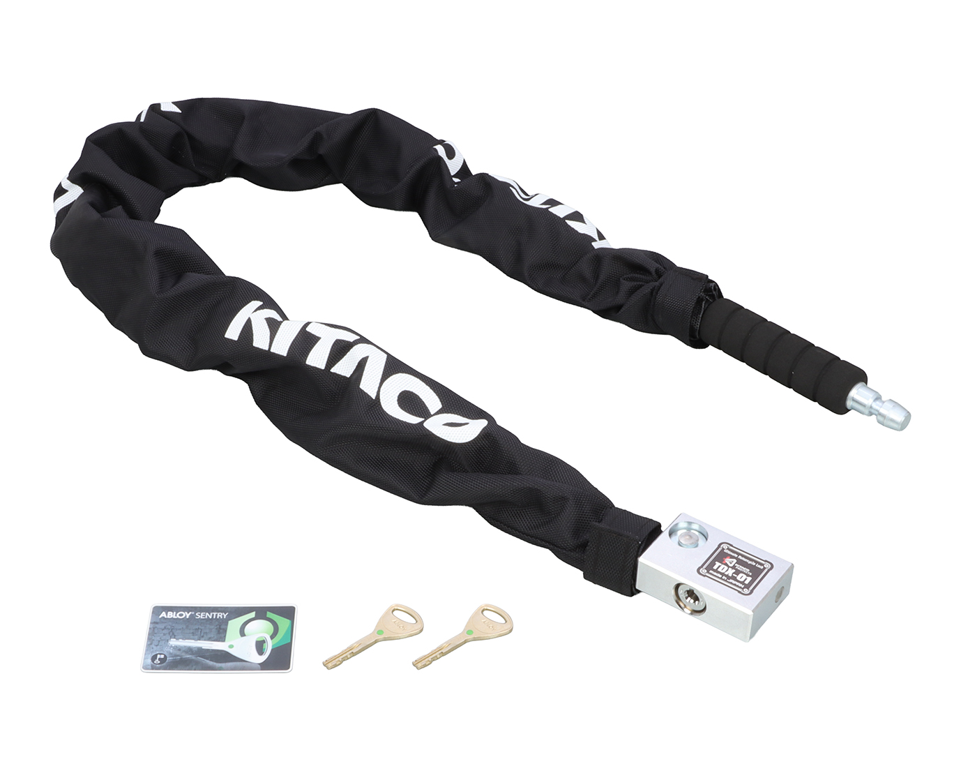 フラットバージョイント構造によりコンパクトに折り畳め、スクーターのメットインにもすっきり収納可能。門柱ロックにも最適な設計です。