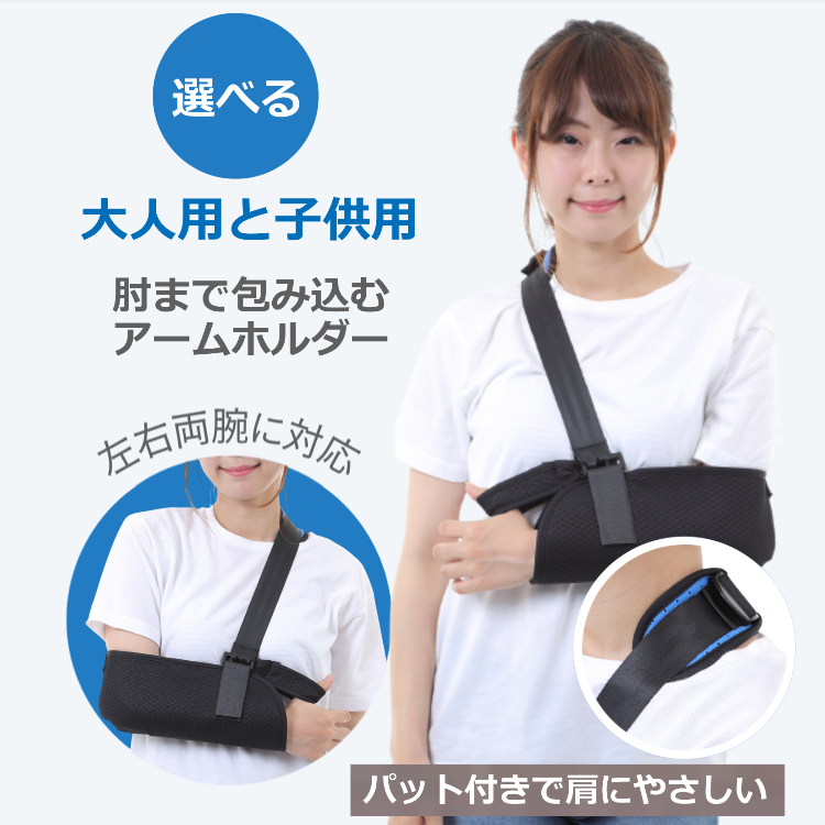 アームホルダー 腕吊り 大人用 子供用 三角巾 腕つり 骨折 アームホルダー 子供用 アームスリング 男女兼用 左右兼用 バンド ブラック 送料無料