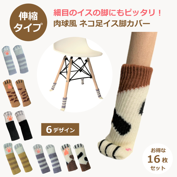 イス 椅子 足 カバー 16枚セット 猫足 ねこあし 滑り止め 脚 カバー 猫あし 肉球風 ピアノ キャップ チェアソックス 机 脚キャップ 送料無料