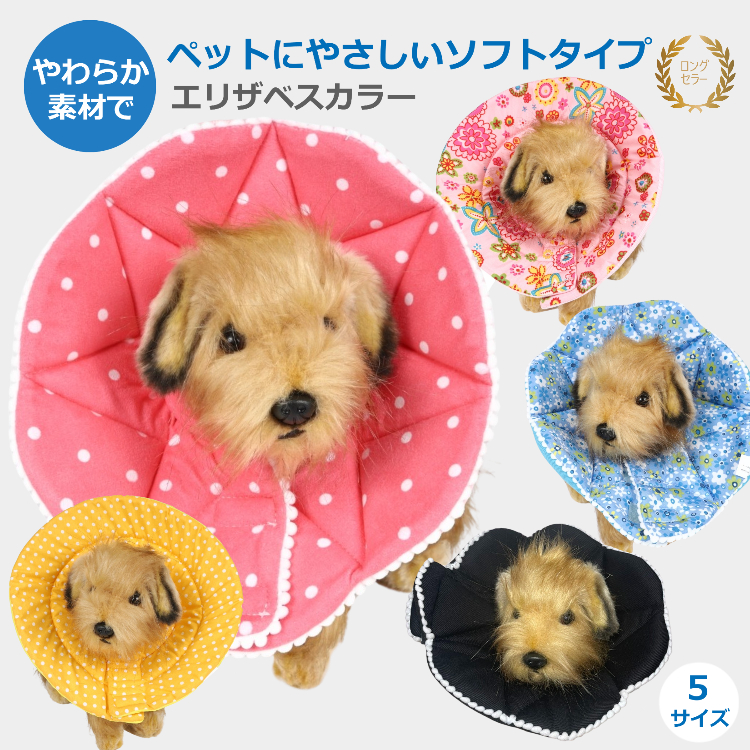 エリザベスカラー 超軽量 ソフトタイプ ポリエステル 犬 猫用 5サイズ やわらか 傷口保護 傷舐め防止 引っかき防止 送料無料