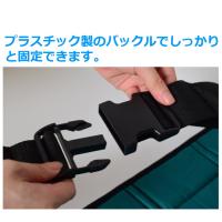 マジックテープではなく、プラスチック製のバックルでしっかりと固定できます。