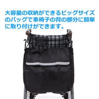 大容量の荷物を収納できるビッグサイズのバッグで車椅子の背の部分に簡単に取り付けができます。