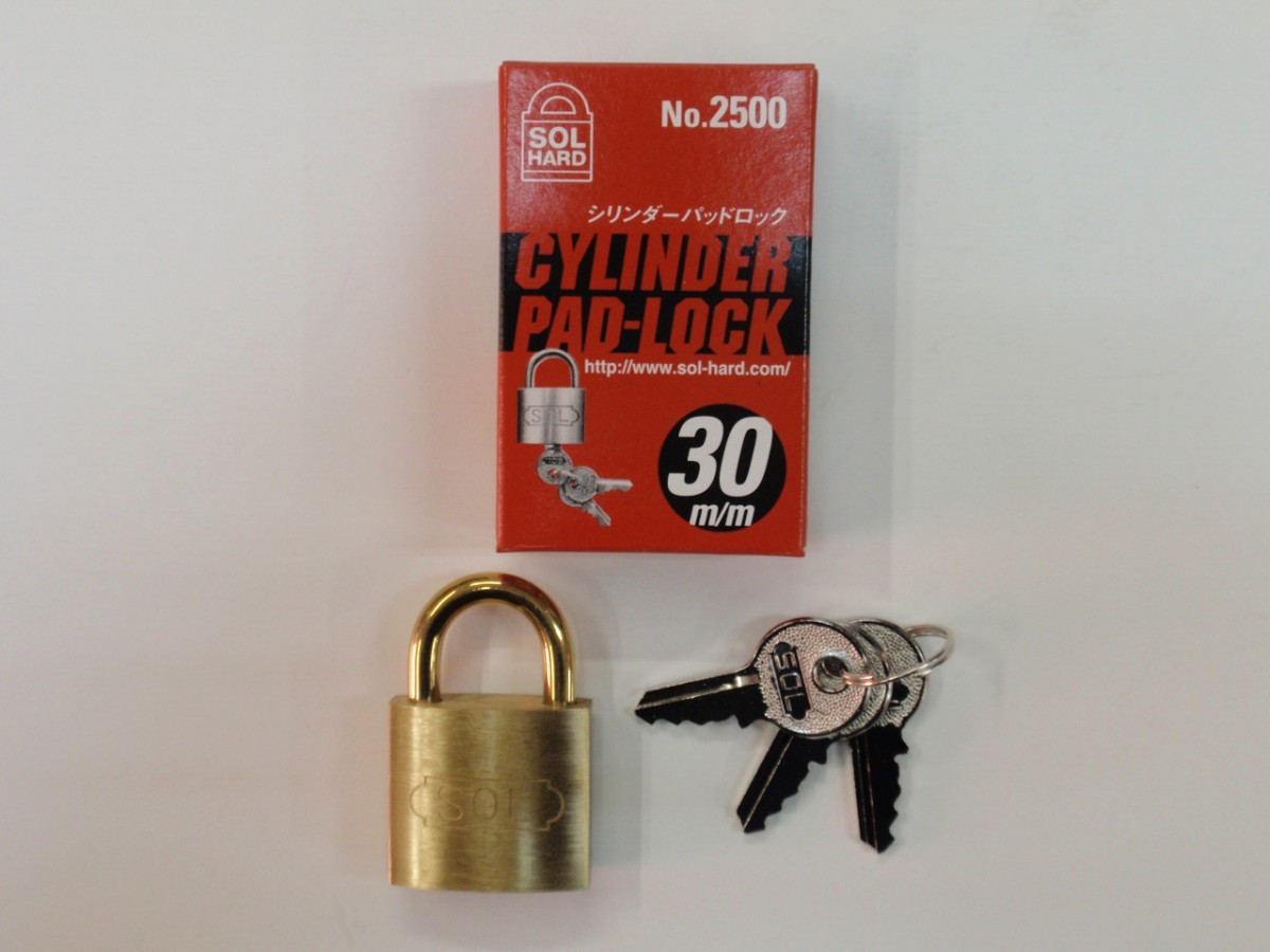 SOL(ソール)シリンダー南京錠 No.2500 30mm 同一鍵 A421