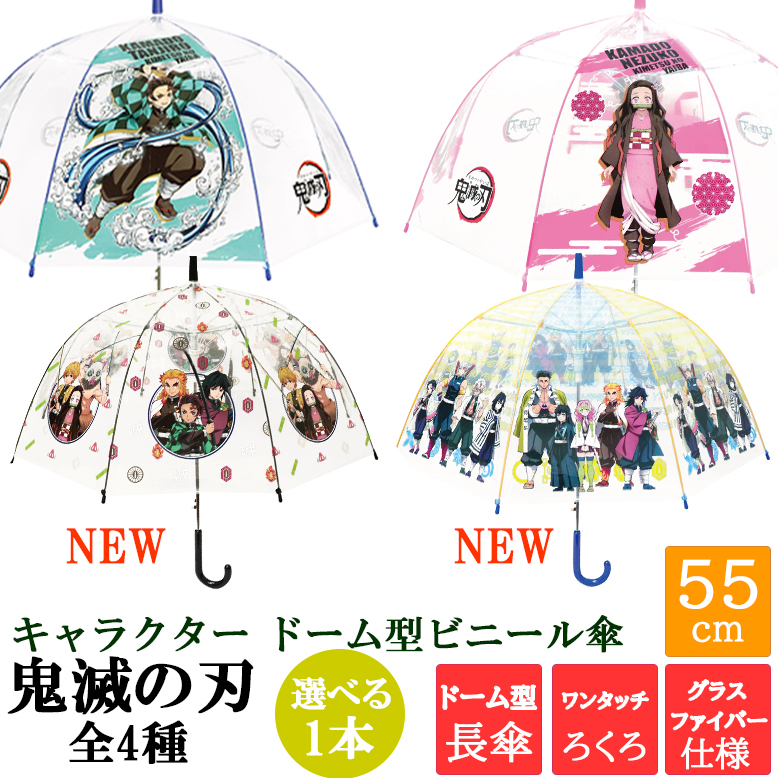 55cm 鬼滅の刃 ( 炭治郎 禰豆子 鬼殺隊 柱 ) こども傘 ドーム型 ビニール傘 キャラクター傘 グラスファイバー 耐風 ワンタッチ 入学 新学期