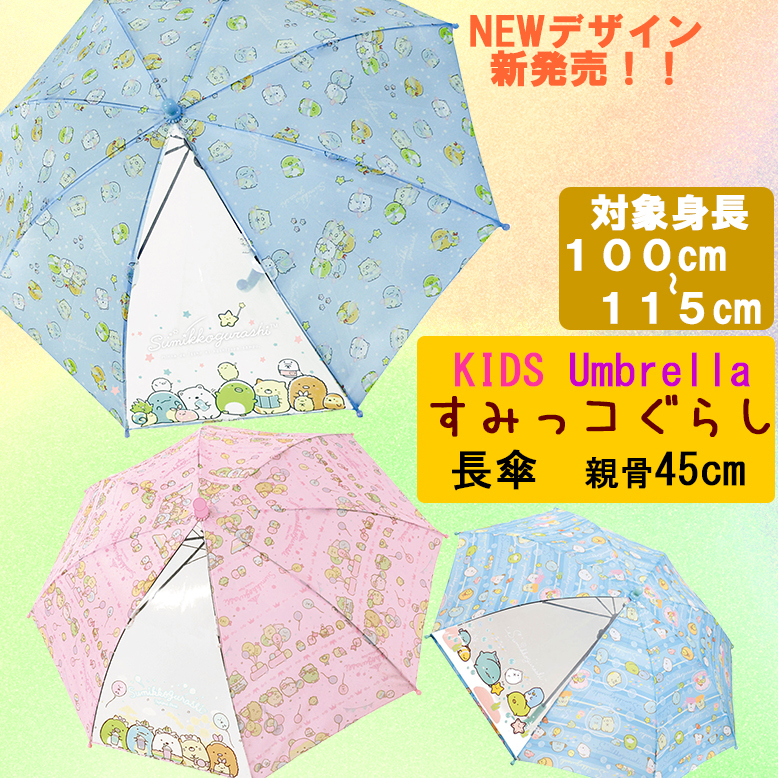 45cm すみっコぐらし 安全 セミオートろくろ 対象身長 100〜115cm こども傘 キッズ傘 長傘 デビュー傘 透明窓付き