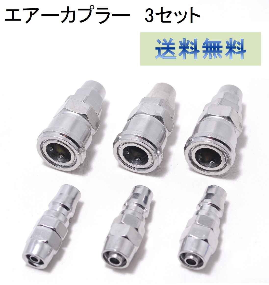 エアーカプラー 3セット エアーホースカプラー ウレタンエアーホース用 カプラ プラグ ソケットナット ホース外径8mm 10mm 12mm 内径5ミリから8ミリ