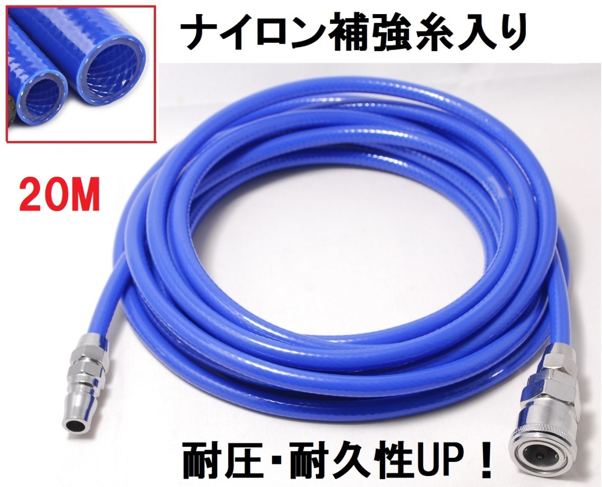 エアーホース 20m 青 コンプレッサー用 ホース エアーチューブ ウレタンホース ブレードホース 外径8mm 内径5mm エアカプラー付き