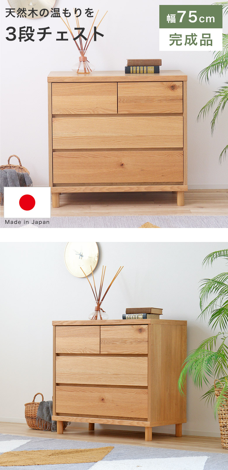 チェスト タンス 3段 北欧 木製 完成品 リビング収納 たんす 引出し HAU75チェスト