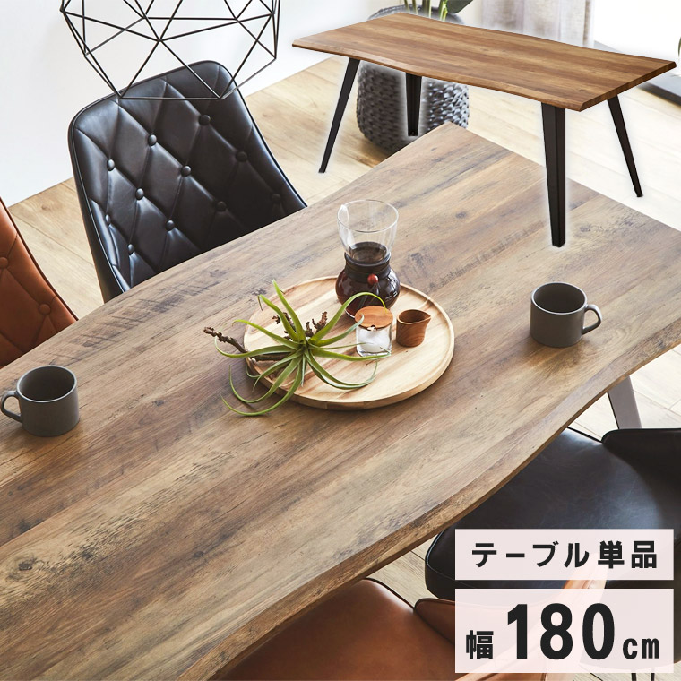 アメリカンヴィンテージな雰囲気を思わせるポップながらも重厚な雰囲気の180cmダイニングテーブル。天板の縁には「なぐり加工」を施し躍動感をプラス。その姿はダイニング空間の主役にふさわしい存在感があります。