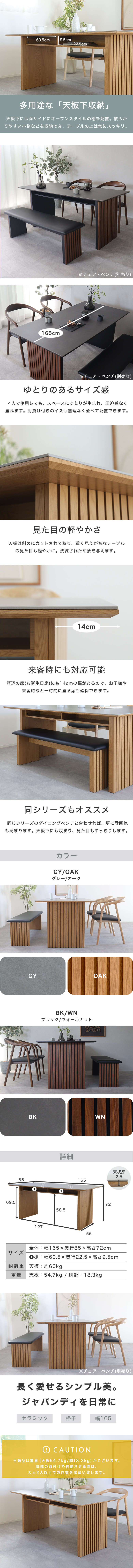 ダイニングテーブル 4人 セラミック 165 食卓テーブル おしゃれ 木製 モダン 北欧 ナチュラル 和モダン 高級 セラミックダイニングテーブル ウォールナット