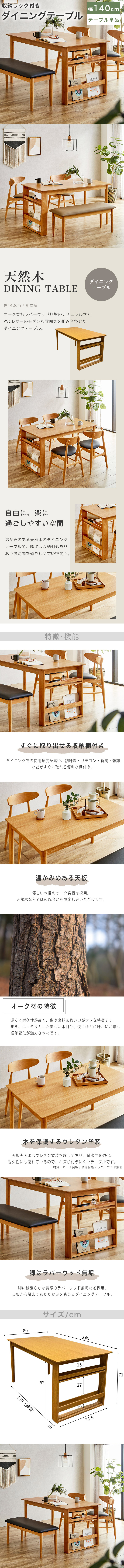 ダイニングテーブル 140 収納付き 木製 4人掛け 収納 調味料入れ シェルフ付き おしゃれ マガジンラック 食卓テーブル 天然木 ダイニング