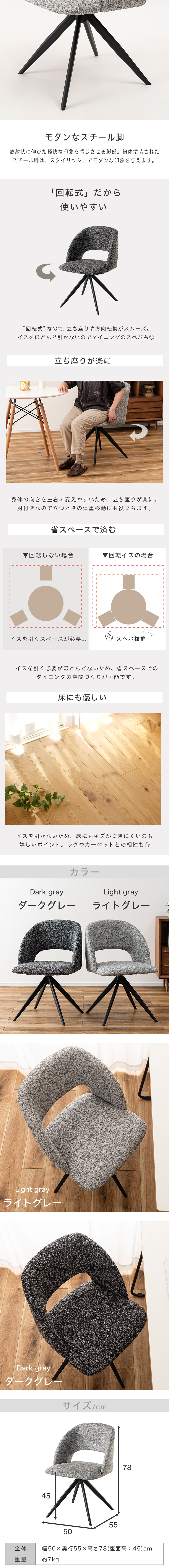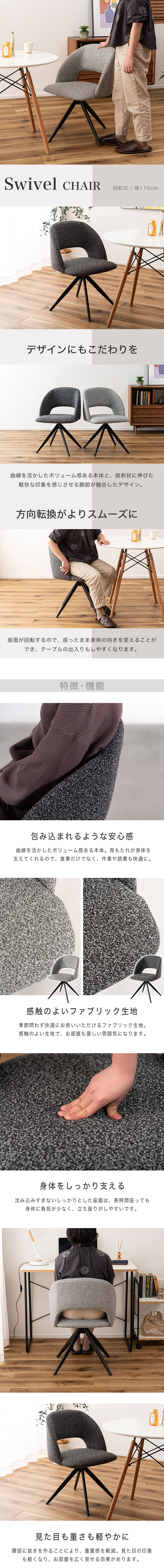ダイニングチェア 回転式 チェアー ファブリック 布地 モダン おしゃれ シンプル 回転椅子 イス いす ダイニング リビング オフィス おしゃれ グレー