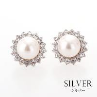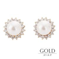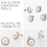 | ★顔周りをパッと明るく ------------------------------------------------------------ 大きめのパールの周りにビジューを散りばめたピアス。 エレガントかつ、ひまわりのような明るさをもたらしてくれます。 ★大粒パールが存在感抜群! ------------------------------------------------------------ 程よい大きさながら、大粒のパールとビジューがしっかりと存在感を発揮します |