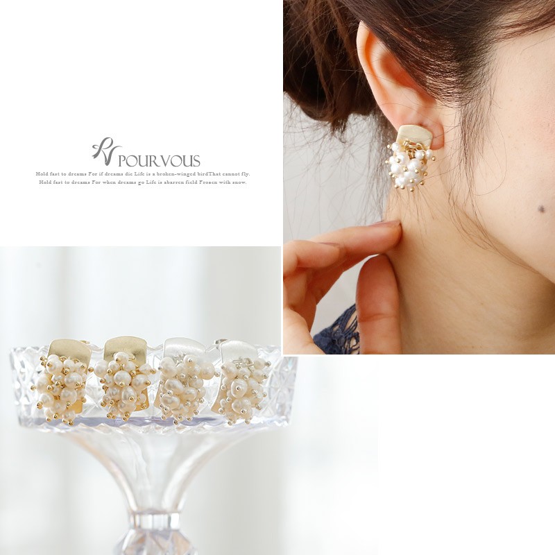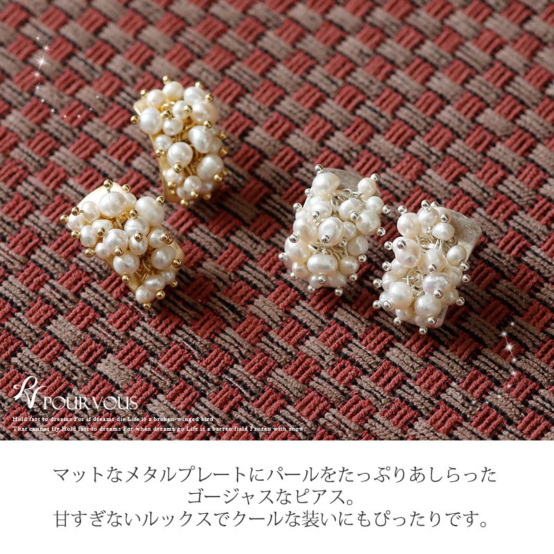 | ★上品さとクールさを兼ね備えたアイテム ------------------------------------------------------------ 小粒パールが揺れてゴージャスな雰囲気のある仕上がりに。 ドレススタイルでエレガントにもパンツスタイルでクールにも決まります。 ★大人っぽさを引き立てる ------------------------------------------------------------ 落ち着きある質感のメタルプレートで派手過ぎず大人っぽい印象のピアス。 シンプルなコーディネートのアクセントにもピッタリです♪ |