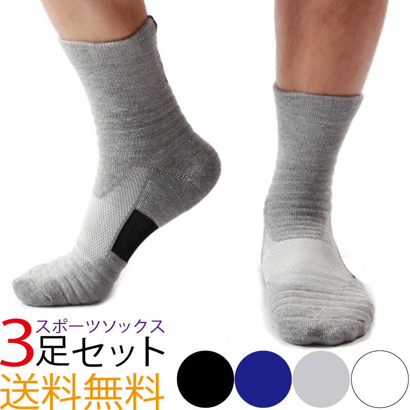 靴下 スポーツ ソックス 3足 セット ミドル 丈 厚手 メンズ