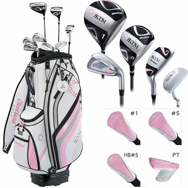 【即納】ダンロップ クリーブランド レディース ゴルフセット パッケージセット 8本組(W#1、W#5、HB#5I#7、9、PW、SW、PT) キャディーバッグ付き【22】