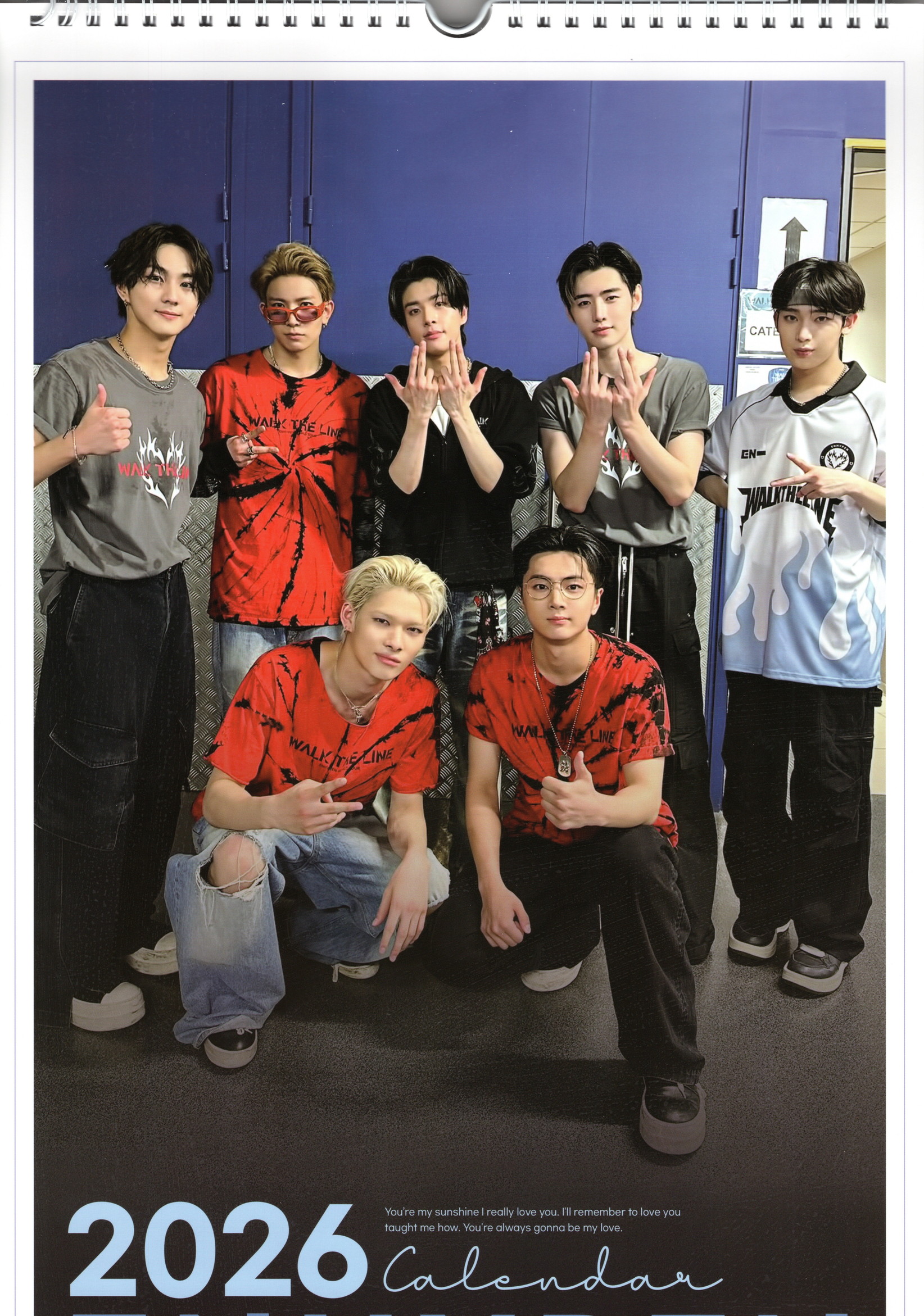 ENHYPEN エンハイフン グッズ 大判 壁掛け カレンダー 2026年 (令和8年) + ステッカーセット