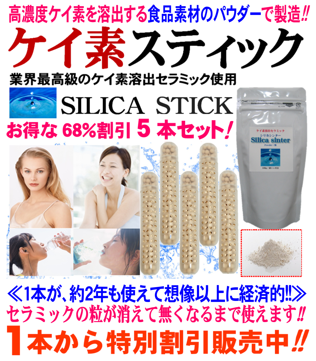 雑誌やTVで話題の高濃度のシリカ水/ケイ素水を生成できる『シリカ ケイ素 スティック』を格安販売!