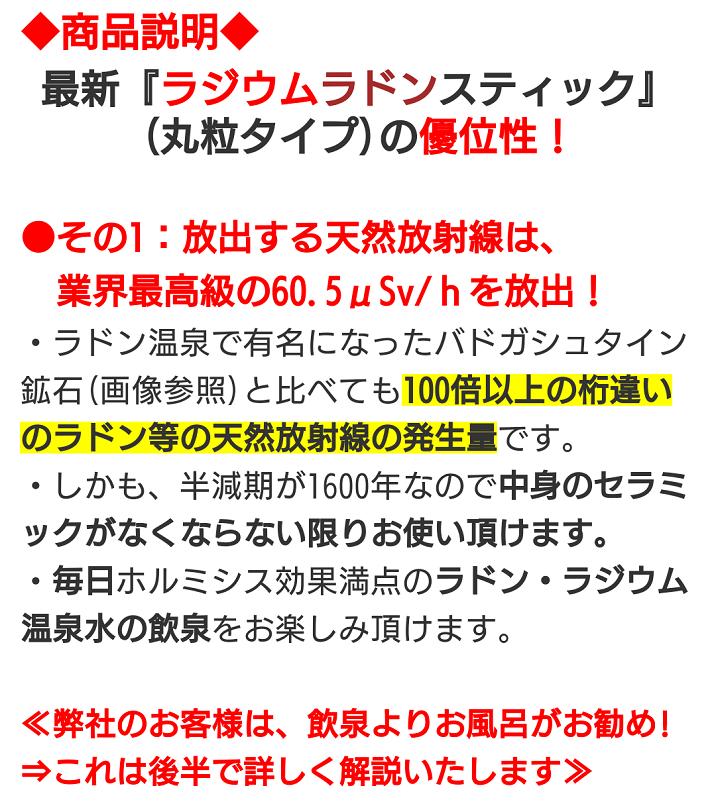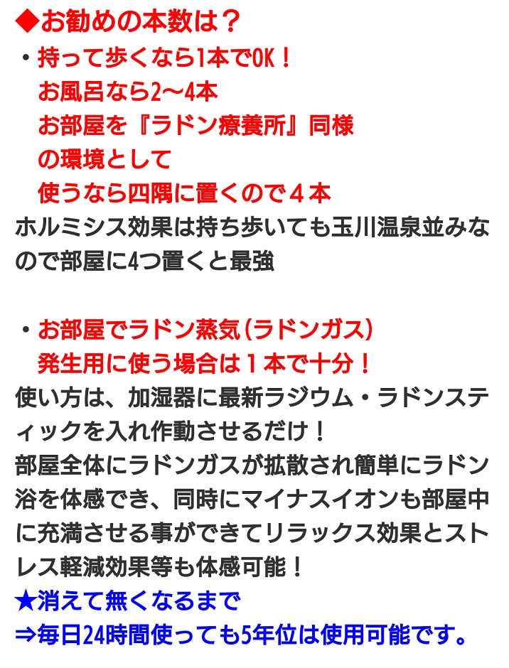 | ★4本なら飲泉/加湿器/お風呂にも 複数人で使え部屋の四隅に置けば ラドン療養所環境同様になります! |