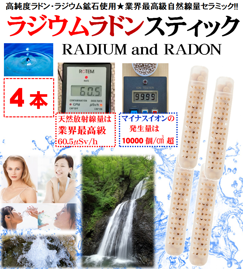 ラジウムラドンセラミック(4本割引セット)★業界最高級の「放射線ホルミシス効果」と「マイナスイオン効果」に「テラヘルツ効果」を加えた超強力な3つの機能性