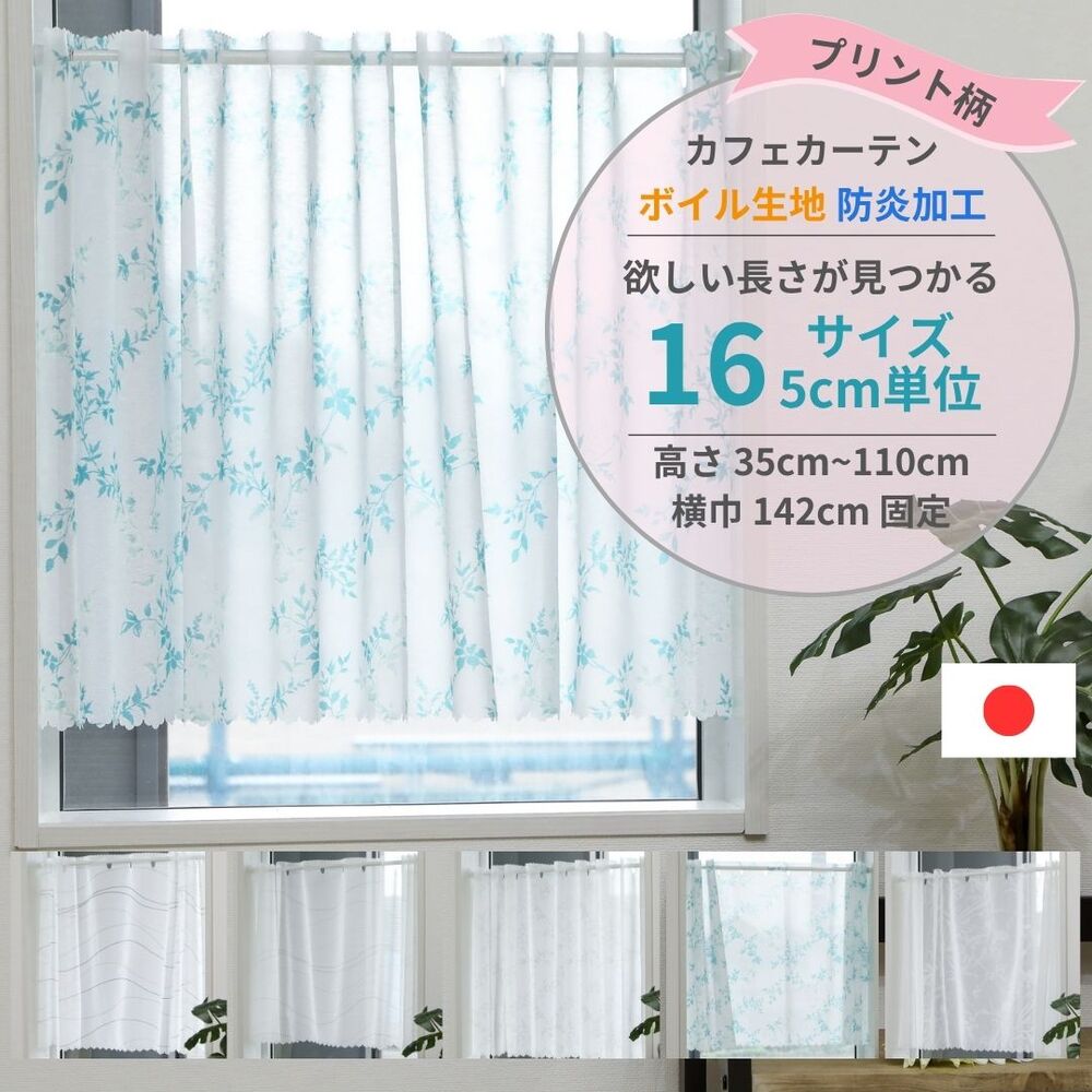 16サイズ・5柄 から選べる 横幅142cm カフェカーテン 防炎ボイルカーテン プリント 日本製 防炎 UVカット 遮熱 省エネ ウォッシャブル