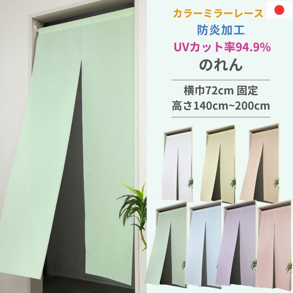 のれん 暖簾 間仕切り 横幅72cm 防炎 ミラーレース UVカット94.9% 無地 遮熱 保温 省エネ ウォッシャブル 高機能 日本製