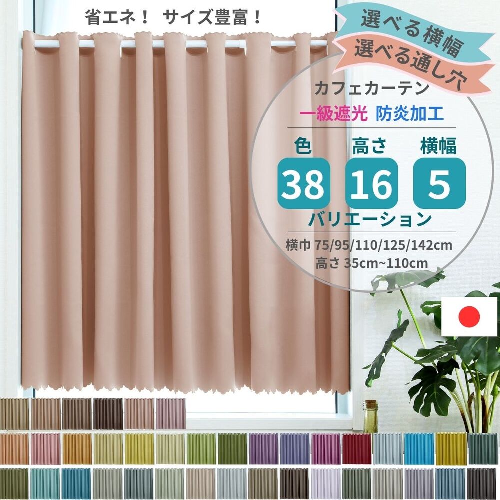 「全38色×サイズ多数 選べる通し穴」1級遮光 カフェカーテン 防炎 UVカット 断熱 保温 遮熱 小窓 突っ張り棒対応 日本製