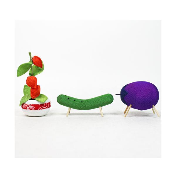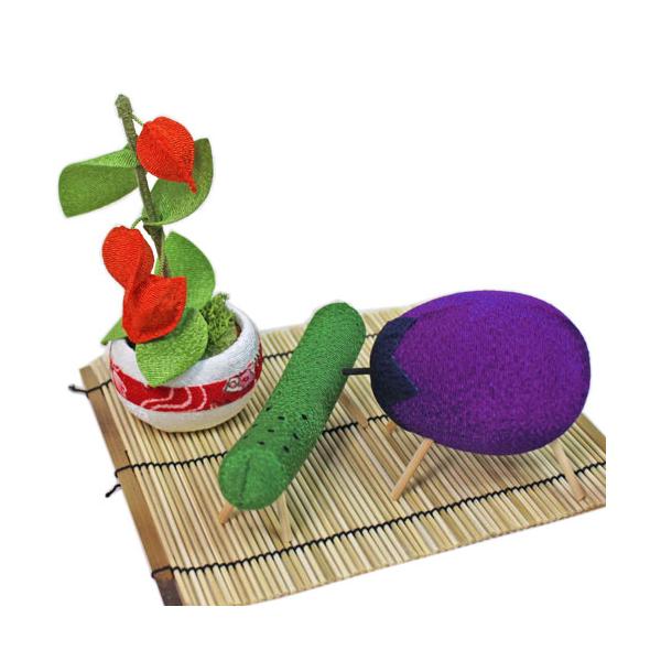 ちりめんで作られた、夏のお盆には欠かせない盆飾りです。お盆の盆棚にお供え物と一緒にお飾りする精霊馬です。