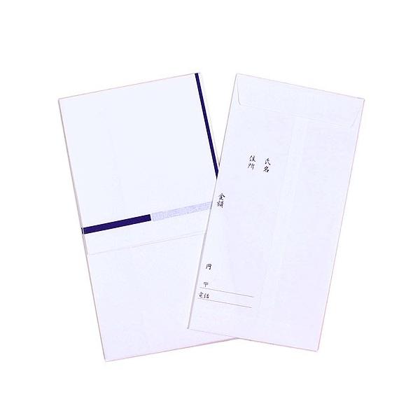 金封は版画用紙に紫と銀で水引がプリントされています。 中封筒は氏名、住所、金額、郵便番号、電話番号の表示がされているので便利です。 お札を折らずにまっすぐ入れられるサイズです。