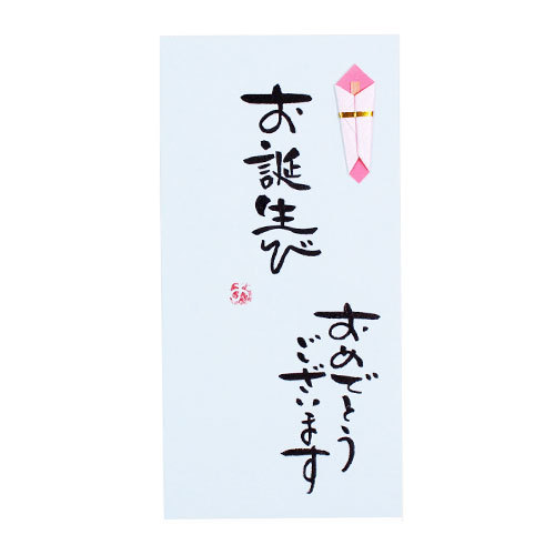 お誕生日のお祝いを贈るときに便利なお祝い袋です。一つ一つ手書きの文字で「お祝い」と書いてあります。金封は封筒式で、お金が透けないよう、お金を挟む二つ折りカード付きです。