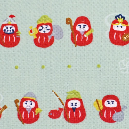 捺染てぬぐい「だるま七福神」【3枚以上で送料無料】 手拭い 冬 縁起 小紋柄 濱文様 ケイス 日本製 生地 日本てぬぐい ハンカチ タオル 飾り 布 包む メール便