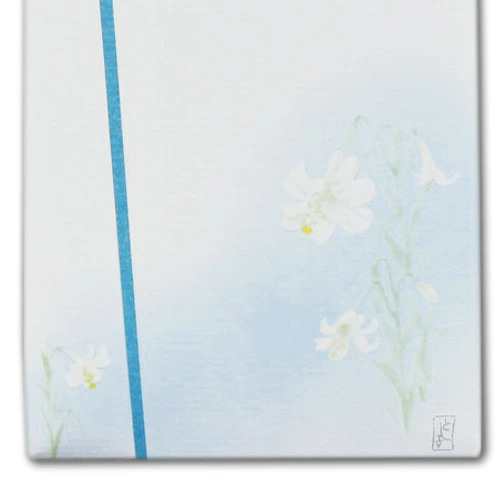 シンプルな白い花のイラストが描かれています。キリスト教式のお葬式用に。多当金封で中袋付きです。お金を入れる目安は5000円〜5万円です。