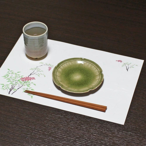 上質な漉き込みの和紙にワンポイントの入ったランチョンマットです。