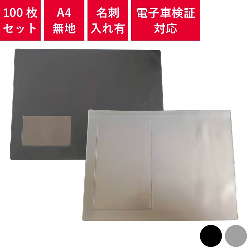 車検証入れ A4 100枚セット 電子車検証対応 無地 名刺入れ A4ポケット 電子車検証 | 名入れ無し 車検証入